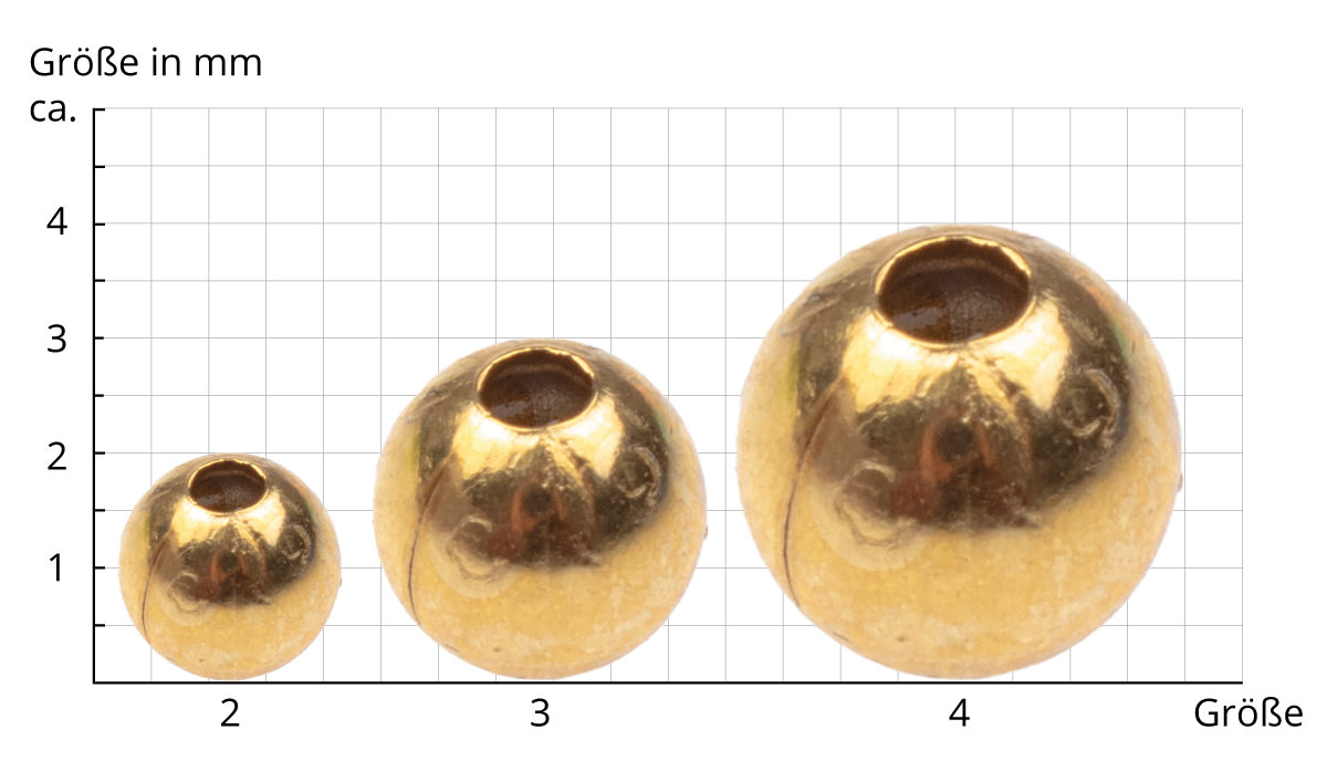 FLIEGENFISCHEN – Messingkugeln werden als Augen bzw. Köpfe für Nymphen und Streamer genutzt. Der Durchmesser der Kugel beeinflusst die Sinkgeschwindigkeit der Fliege. Die polierte Zierkugel ist eine schnelle und attraktive Beschwerung für Steinfliegen, Köcherfliegen, Maifliegen und andere Insektenimitationen. Äschen sind besonders auf Goldkopfnymphen aus, aber auch andere Fische wie Seelhead-, Regenbogen- und Bachforellen, Saiblinge, Alande, Döbel und Rapfen können der Drift des Messingmusters nicht widerstehen. Kein Vergleich zu vernickelten Blei- oder Tungstenköpfen, auch wenn diese schneller größere Tiefen erreichen.