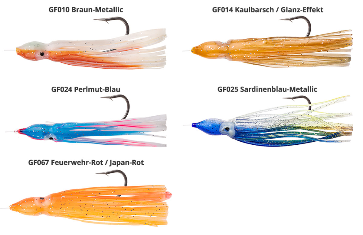 - Der Gummi-Octopus ist als Hauptköder zum Hochseeangeln auf Dorsche, Seelachs, Leng & andere Meeresfische und als vielfach bewährter Beifänger in den Tiefen der Ozeane einsetzbar