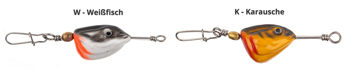 • die 2 reizenden naturnahen Fischkopfgestaltungen bringen jeden Köder schnell auf Tiefe