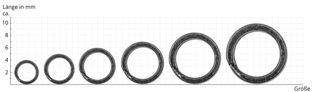 Was sie so stark macht ist das PREMIUM-Material und die aufwändige Fertigung. Wir haben auf Tragkraftangaben verzichtet, weil z.B. der 7mm Ring schon 42kg Reißfestigkeit erreicht und kaum einer, bei so kleinen Ringen, mit stärkeren Schnüren fischt. Wie oben beschrieben müssen sie aber so stark sein, wegen der auftretenden Hebelkräfte.